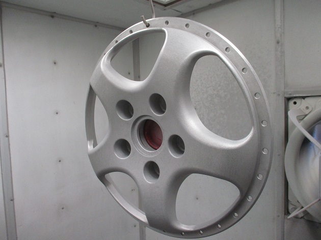 元の塗装を剥離、ブラスト研磨後にバレル粗研磨にかけ、塗装前の下地を作ります。