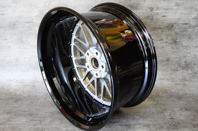 アウターリムは、オリジナルは旋盤ポリッシュのダイヤカットで、同じくダイヤカット仕上げも出来ますが、ダイヤカット面に対してのクリアーは溶剤ウレタン塗装のクリアー塗装になり、パウダーコートクリアーと比べると塗装の強さは劣ります。