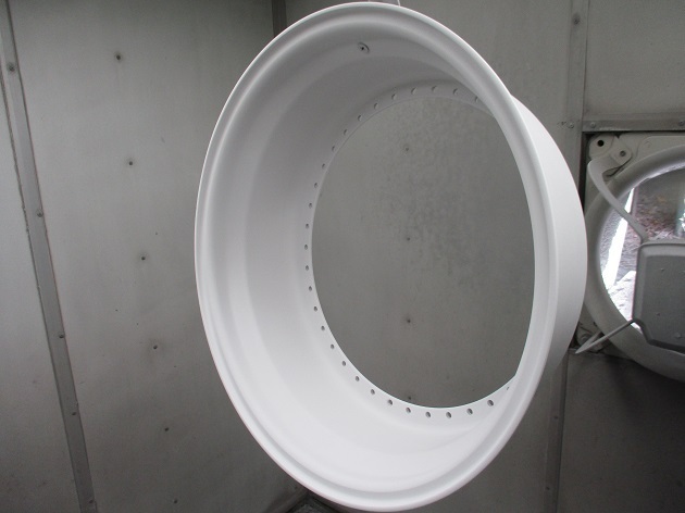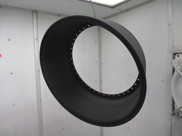 インナーリムはブラックにするので、脱脂洗浄後にグロスブラックをパウダーコートします。