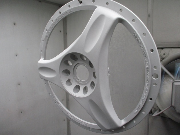 インナーリムはシルバーに塗装しますので、回転研磨後にシルバーをパウダーコートです。