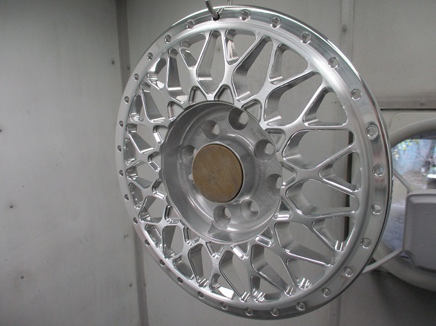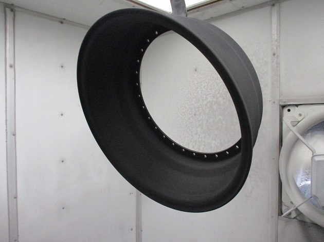 インナーリムはブラックにしますので、回転研磨で塗装の下地を作り、グロスブラックをパウダーコートします。