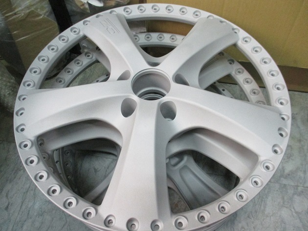 リバレルリムのアウターはポリッシュで入荷するので、ポリッシュご希望の場合は、そのままでも使えますが、バフ目や擦れ跡などはあるので、自社でバレル仕上げ研磨にかけ、綺麗な鏡面ポリッシュにしてからクリアーをパウダーコートです。