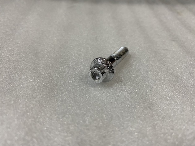 再クロームメッキ加工時は、元々のメッキ層を剥離し、ある程度は素地を研磨で整えますが、あまり研磨し過ぎると小さい物なので、形が変わってしまいますし、頭の工具のかかるギザギザも無くなってしまいますので、必要以上に研磨する事は出来ません。