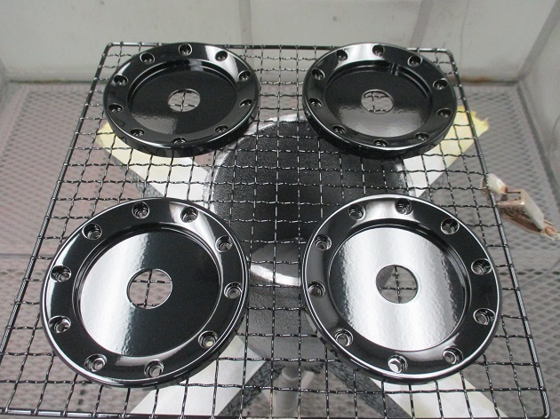 インナーリムはブラックご希望なので、脱脂洗浄後にブラックをパウダーコートします。