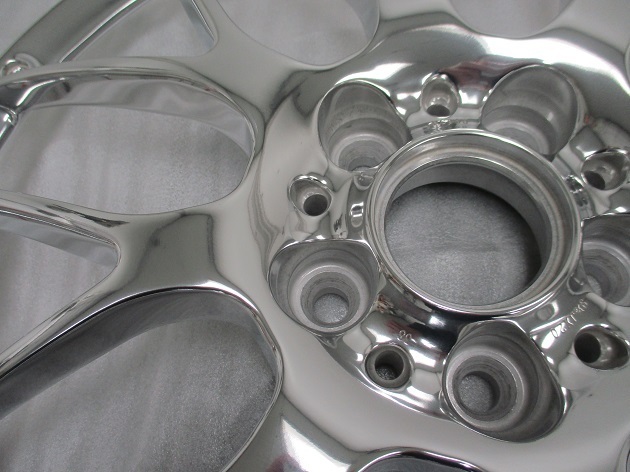 2P、3Pのディスク、1Pホイール丸ごとポリッシュは、バレル研磨機にかけてポリッシュに加工をしますが、塗装を剥離してそのままバレル研磨にかけるだけでは綺麗なポリッシュになりません。