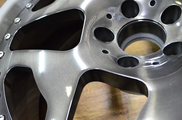 インナーリムは4本共通でグロスブラックにしますので、回転研磨で素地を整えてから、グロスブラックをパウダーコートします。