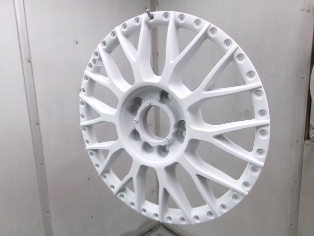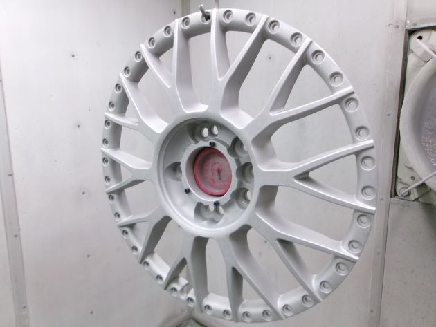リムの仕上げは、インナーはシルバー、アウターはポリッシュにしますので、まずはインナーをシルバーにパウダーコートします。