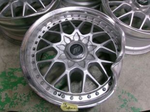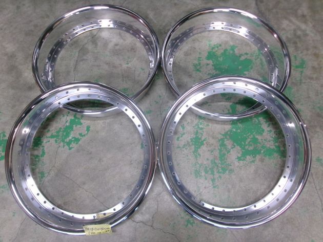 今回はそんな貴重な昔のワーク3Pホイールですが、事故で1本リムを強烈に曲げてしまい、修理も不能のため、この際アウターリムを今より深いリムに交換と当時に、全て綺麗にフルオーバーホール再塗装ご希望で、兵庫県よりご依頼いただきました。