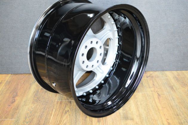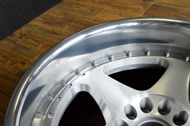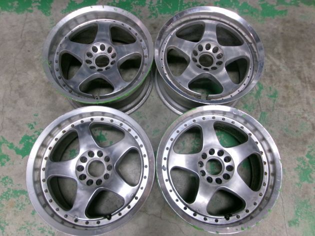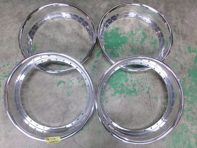古いホイールなので、ブラッシュドでカスタムリメイクと、アウターリム交換でサイズ変更ご希望で東京都よりご依頼いただきました。