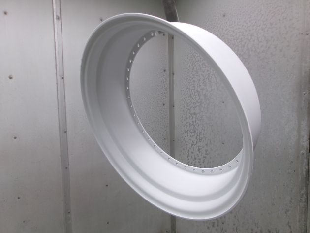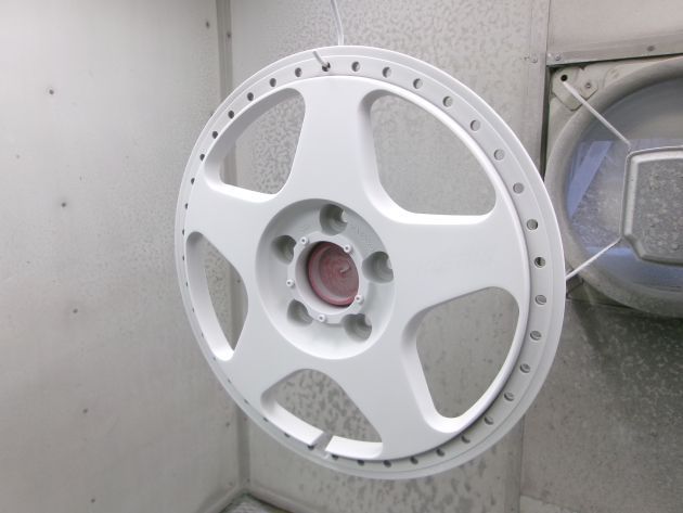この時の塗装は、最後はパウダーコートのクリアーで閉じるので、通常のウレタン塗装で行うと、パウダーコートの焼き温度180℃には耐えられませんので、耐熱性のある塗装で行います。