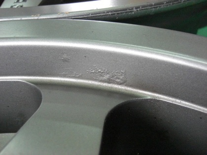 この場合、ベースのパウダーコートは丈夫なポリエステル樹脂膜ですのでそう簡単には剥がれたりはしませんが、その上の溶剤ウレタン塗装膜は強くはありません。