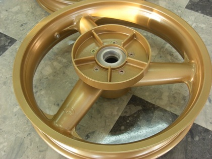 バイクマグネシウムホイール オーバーホールでゴールド塗装