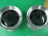 OZフッツーラの17インチ、4本オーバーホール再塗装と、内2本のリム交換リバレル加工ご希望で、東京都よりご依頼いただきました。 センターキャップが純正ではなく、マシニングでワンオフで作られた物です。