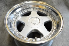 当社では入庫率が非常に多い、ポルシェ純正スピードライン3Pホイールの18インチです。 今回は、数年前に当社でバレル研磨にてディスクをポリッシュへカスタムリメイクさせていただいた物の再入庫で、ディスクを