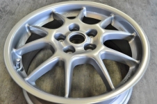 茨木県からのご依頼です。 BBS RKです。特に目立った傷み、破損はありませんが、経年でも塗装劣化、艶引け等があるため、心機一転パウダーコートでのハイパーシルバーダークへの色変えリフレッシュ塗装での入