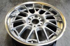ボルクのグループCです 一世を風靡しましたね スポークのくすみ リムのクリアー剥がれ 仕様年数から考えると当然です 各パーツごとに個別に作業します アウターリム塗装剥離 裏シルバー塗装 アウター