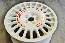 北海道のお客様です。 昨年に当社にて色変えリメイクをさせて頂いたホイールでして、今回の入庫理由はクリアー剥げになります。 前回の作業内容は、ベース(赤)は通常通りにパウダーコートで塗装をし、OZラリー