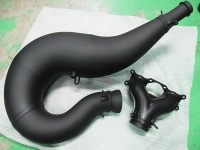 ポラリスPRO-RMK 15年モデルの純正マフラー&Yパイプです 純正マフラーは本体にアルミの耐熱カバーが付いていますが、 このアルミのカバーが実は良く無いのでしょうね アルミのカバーを外してサンドブ