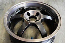 エンケイRPF1の18インチです。 新品ホイールからブラッシュドへカスタムご希望で、群馬県よりご依頼いただきました。 作業途中の画像がありませんが、元の塗装を剥離し、全て手作業フリーハンドでブラッシュ