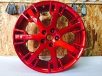 マセラティ純正ホイール 20インチ 特に修理は無く綺麗です 北海道よりご依頼で、今回これをブラッシュド/キャンディレッドでカスタムします まずは塗装剥離ですが、欧州車純正ホイールは、素地の砂目が粗く