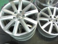 ゴルフ用の18インチホイールです 元々は普通〜のシルバーでした これを 半艶ガンメタに塗装しました 程度も良く 補修する箇所もこれといってありませんでした