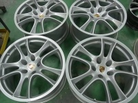 ポルシェカイエン純正21インチ 北海道からのご依頼になります 修理目的ではなく色変え目的ですので、補修する傷も無く綺麗です 塗膜耐久を重視し、パウダーコートでの色変えですので 仮に新品であっても塗膜は