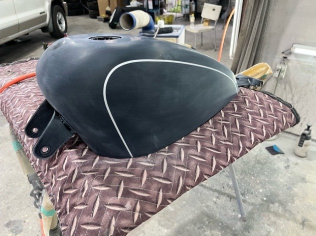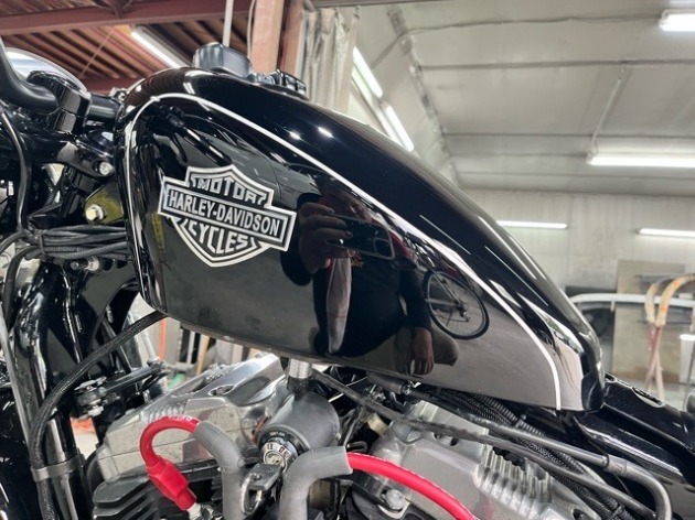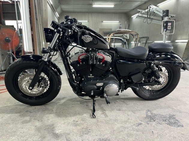 Iさまのハーレーフォーティエイト オリジナルカラーのタンク塗装完了し取付♪