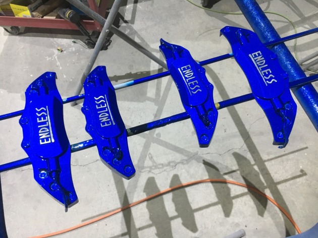エンドレス風ブレーキキャリパーカバー前後で色が違うので塗装のご依頼です♫