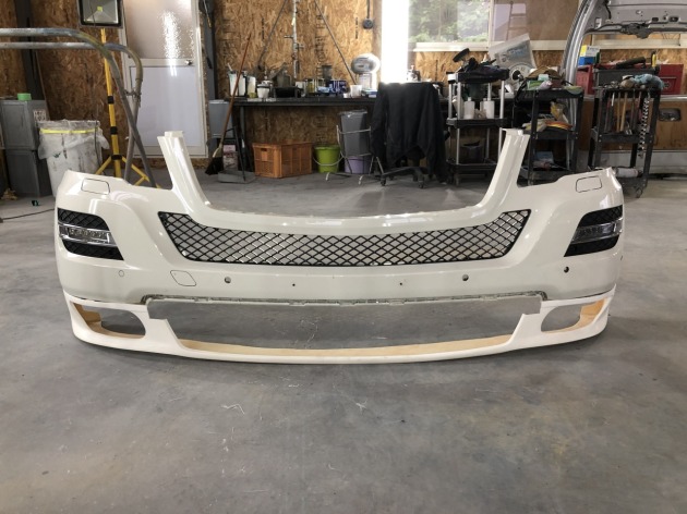 メルセデスベンツML 形状の合わない社外FRPリップを加工して製作中!