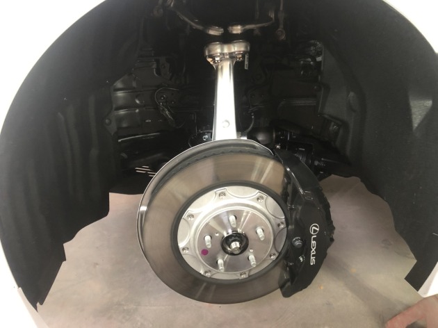 レクサスLS Fスポーツ ブレーキキャリパーペイントでご入庫です♫ 2020年6月10日 S様のレクサスLS Fスポーツご入庫です♫先週の土曜日に納車されたド新車!数ヶ月前にご連絡を頂き打ち合わせ文字用のステッカーも用意済みで即作業開始です。新車なのでまだまだ綺麗な状態で作業しやすいです。超デッカイブレーキ!初めての車種なので慎重にバラし。諸々のバラし完了。ドッキドキです…。塗装方法を考えてつつ下処理、マスキングと続きます♫