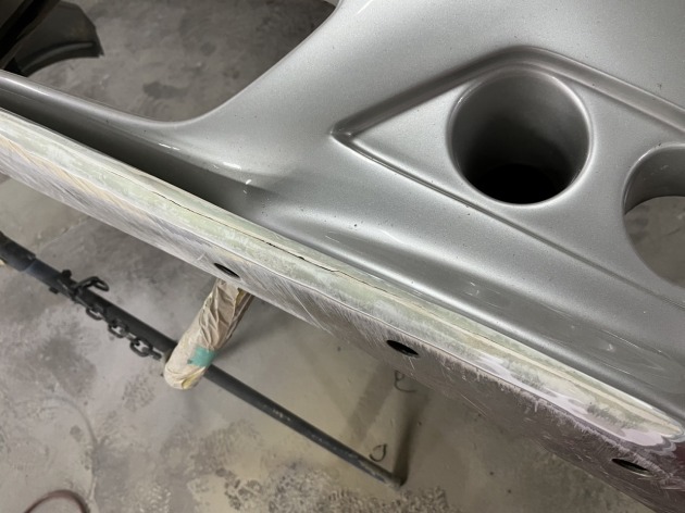 バンパー外れましたので下処理して割れ、欠損修理。