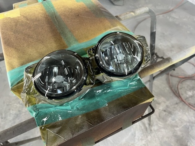オールペン中の自社搬送車 ヒノデュトロ ヘッドライトリフレッシュついでにスモークペイントでカスタム♪