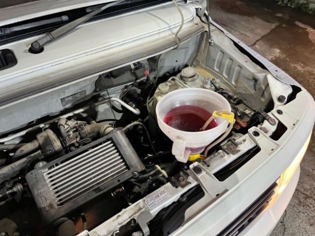 ダイハツネイキッド クーラント漏れ修理で良品中古に交換♪ 2024年10月21日 毎度お世話になっているTさまご家族用にニューマシンをゲット。独特なスタイルで根強い人気のダイハツネイキッド。試運転してみるとクーラントがポタポタ。ダメ元でキャップと漏れ止め投入も治らずご入庫となりました。事前に発注し良品のリサイクルラジエーターを注文ご入庫と同時に作業開始。あちこちが劣化して吹き出していたようです。念の為ホース類は新品交換し車体に取付でチェック無事漏れは収まり作業完了♪ご依頼ありがとうございました♪