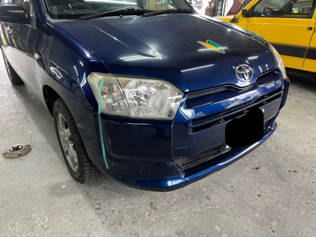働く車 トヨタサクシード ぶつけてしまった前廻り修理依頼 2024年12月11日 働く車トヨタサクシード入庫ですスリップし雪山に衝突してしまい、降り始めのまだ柔らかい雪山でしたが当たりどころが悪かった?あちこちに損傷がフロントバンパーが傷つき、押された衝撃でフロントフェンダーが少し曲がってしまっています自費修理となりますので全て板金修理にて前廻りの修理に加えて、以前にぶつけて凹んでしまっていたリアバンパー角も修理する事に早速作業進めていきますのでお待ちください