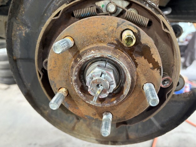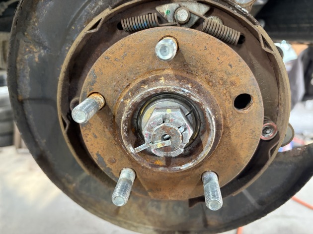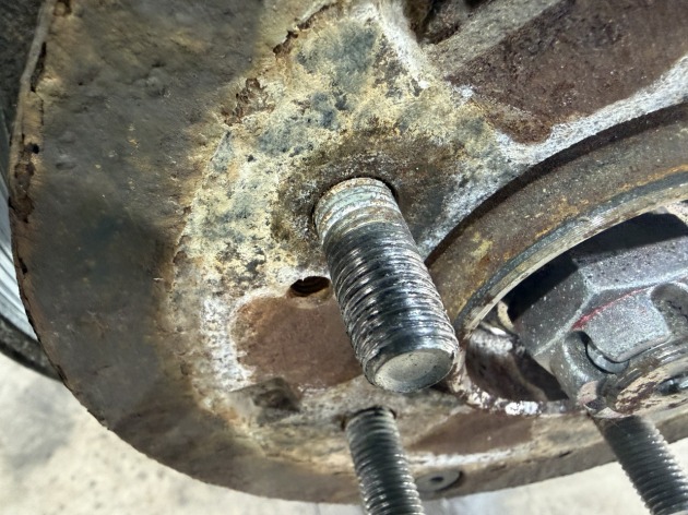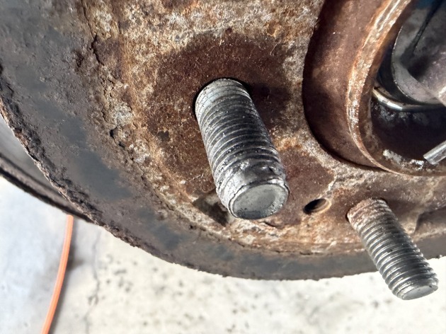 リア側左1箇所、右側2箇所、ハブボルトが破損してますね。