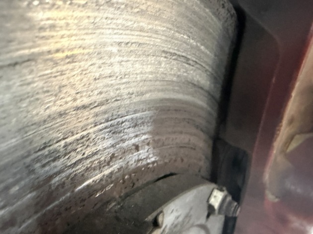交換前の純正ブレンボのフロントディスクローターは、減りきったブレーキパッドの影響でレコード盤の様になってますね…