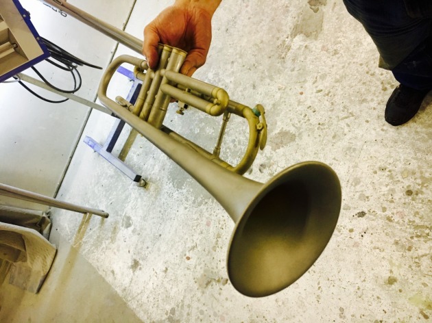 流行ってるんでしょうか?トランペットをサンドブラスト処理!
