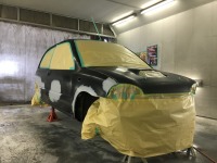 オールペンでオーダー頂いた ヴィヴィオの塗装準備が整いました。 足つけ後にマスキングし、塗装場で待機。 塗装開始ですが これは発色を良くする為の下色で 本チャンの色は納車、完了後で。