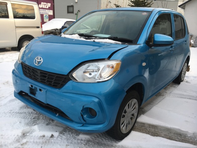 単独事故によって左フロント足周り付近を損傷したトヨタパッソが入庫しました。 左フロントフェンダーと足回りが変形しており、凄いキャンバーがついています... まず左フロントフェンダーは、リサイクルパーツ