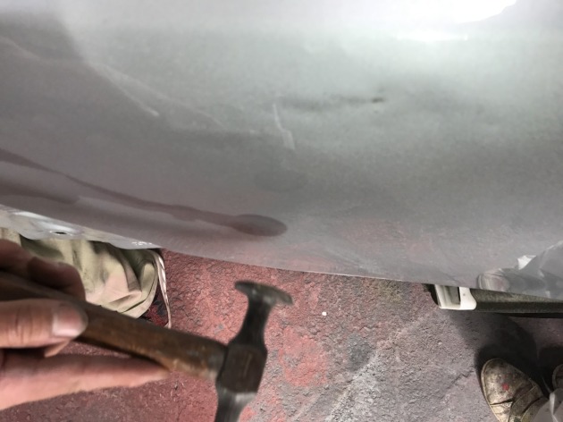 裏にドリーをあててハンマーで叩く!叩く!叩く!