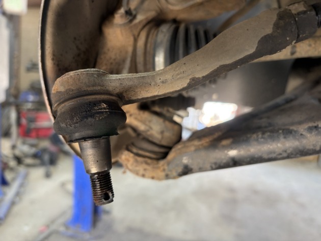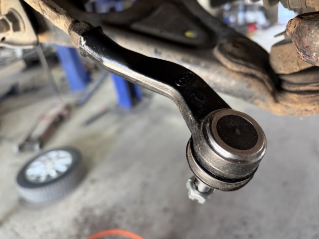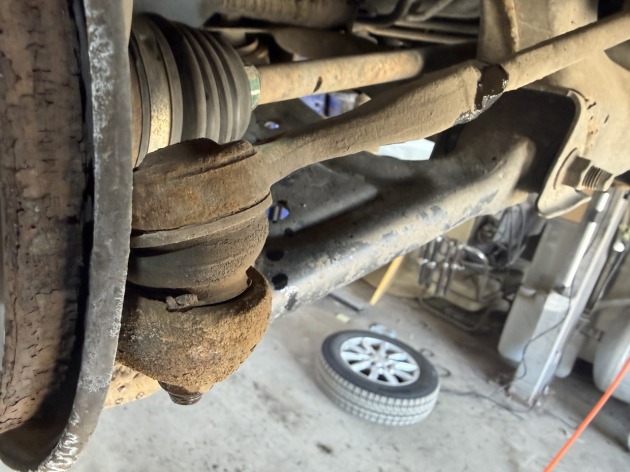 リフトに上げ点検するとタイロッドエンドにガタつきがありました。