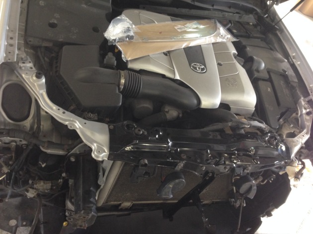 追突事故で前側損傷18マジェスタ ラジエターアッパーサポート交換!