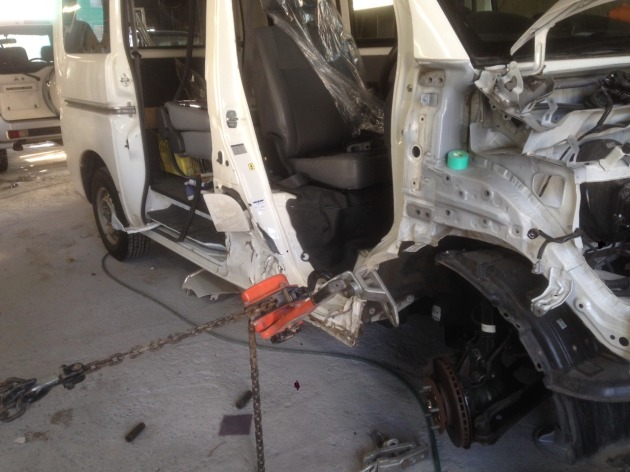同業の板金屋さんより現行ライトエース側面事故の骨格修理依頼!