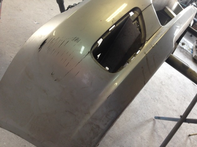フロントバンパーの擦り傷修理でお預かりしております、スバルレガシィツーリングワゴンです。 前回、錆びてしまっていた留め具やボルトをエアーカッターで切って、フロントバンパーを車体から外すことができました
