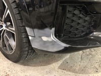 BMW X5のフロントリップスポイラー修理ご依頼です。雪道でのマンホールの段差(くぼみ)にタイヤが落ちて、フロントリップスポイラーが破損してしまったそうです。 最近は、、、SUVの車高でもバンパーや腹