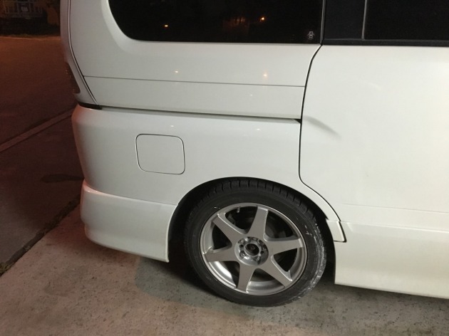 日産セレナ 右リアフェンダー傷付けてサビも発生!早急に修理塗装!
