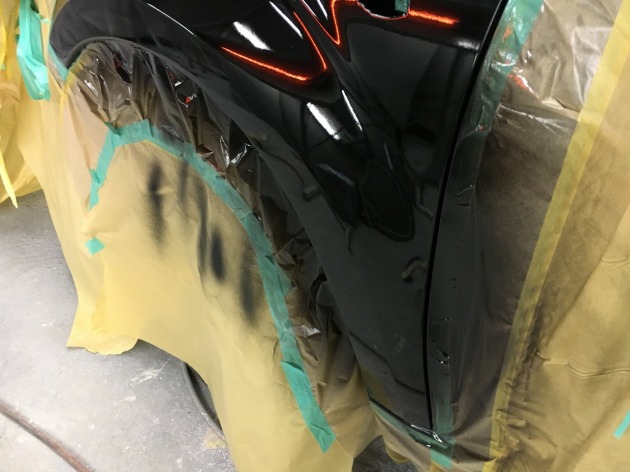 業者様より、スバルフォレスターを、道路パトロールカーカラーに全塗装ご依頼いただきました。 まずは、前後バンパーやヘッドライトなど外して、塗装の準備をします。 道路パトロールカーカラーは、ボディ中央に白