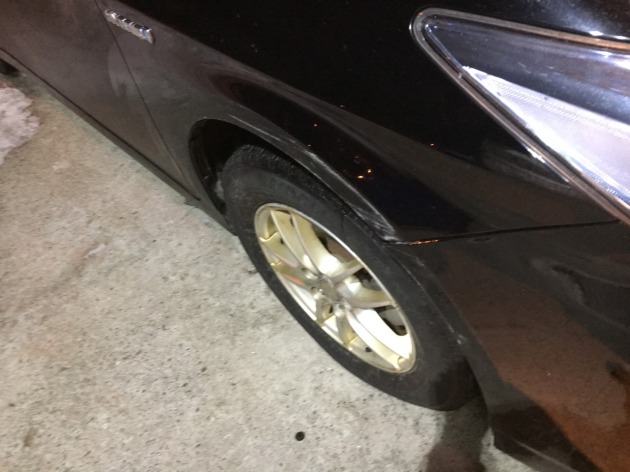 トヨタプリウスの凹み傷修理ご依頼をいただきました。 車庫入れ時に左側へ寄り過ぎて車庫内の荷物に接触してしまったようで、リアフェンダーが傷ついてしまったようです。 どうしても上手く写真に映らない位の薄い
