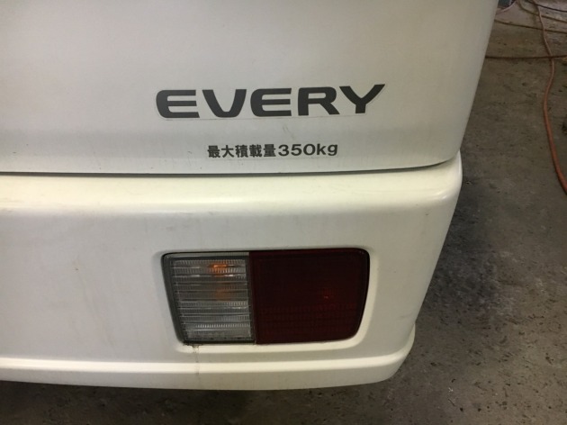 スズキエブリイ 左リヤぶつけてしまいました リヤゲートとリヤバンパーがけっこうひどいことに で、リヤゲートを開けたらドアが閉まらなくなってしまい 板金修理のご依頼です。 交換したいけど交換は、、、 い