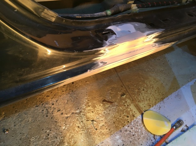 これはサイドシル前側、もしくは右クオーターを取り替えた時の繋ぎ目ではなかろうか?
